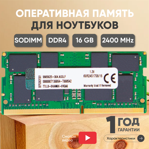 Найти - Модуль памяти Kingston SODIMM DDR4, 16ГБ, 2400МГц, 1.2В, 260-pin, PC4-19200, CL17 17-17-17-39