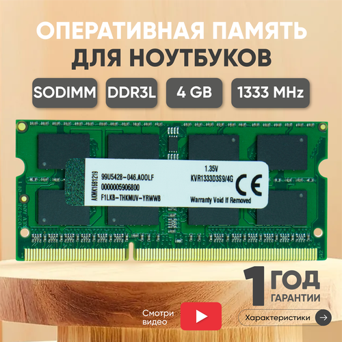 Найти - Модуль памяти Kingston SODIMM DDR3L, 4ГБ, 1333МГц, PC3-10600, CL7 7-7-7-20
