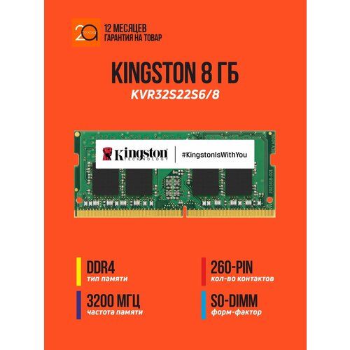 Найти - Оперативная память Kingston ValueRAM 8 ГБ, DDR4, 3200 Мгц, SODIMM (KVR32S22S6/8)