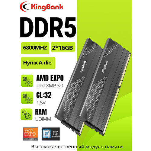 Найти - KingBank Оперативная память Dark Star Blade DDR5 UDIMM 6800MHz Dark Heatsink (Hynix A-die C32) 2x16 ГБ