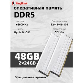 Модуль памяти DDR5 White Heatsink UDIMM 6800MHz(C32) - 24G*2 Hynix-M-Die от KingBank - это высококачественный продукт, который обеспечивает высокую производительность и стабильность работы вашего компьютера.