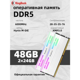 Найти - Kingbank Оперативная память White Star Blade RGB DDR5 UDIMM 6000MHz 2*24GB White Heatsink (Hynix M-Die C28)