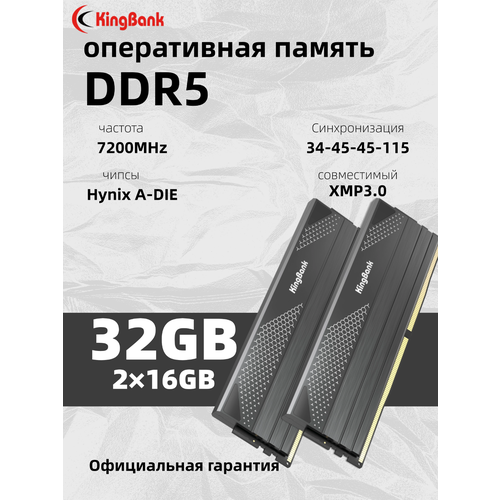 НАЙТИ ВЫГОДНЕЕ - Kingbank Оперативная память Star Blade DDR5 UDIMM 7200MHz 2*16GB Dark Heatsink (Hynix A-die C34)