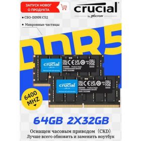 Найти - Crucial Оперативная память DDR5-6400 64GB 2X32GB CSODIMM(CKD)