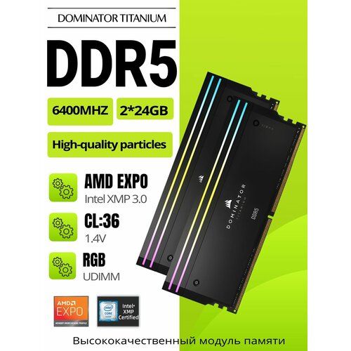 Если вы хотите получить максимальную производительность от своего компьютера, то Corsair DOMINATOR TITANIUM RGB оперативная память 48GB (2x24GB) DDR5 DRAM 6400MT/s CL36 - это именно тот компонент, который вам нужен