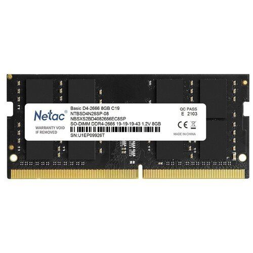 Найти - Оперативная память Netac Basic 8 ГБ DDR4 2666 МГц SODIMM CL19 черный NTBSD4N26SP-08