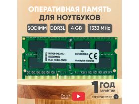Модуль памяти Kingston SODIMM DDR3L, 4ГБ, 1333МГц, PC3-10600, CL7 7-7-7-20 101810137110
