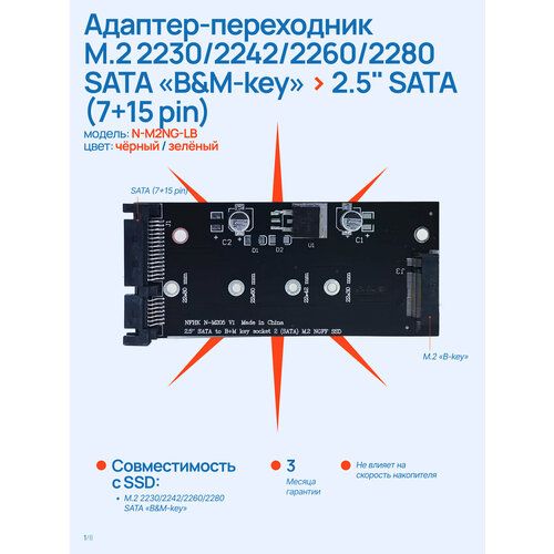 Найти - Адаптер-переходник для установки SSD M.2 SATA (B+M key) в разъем 2.5 SATA, черный, NFHK N-M2NG-LB