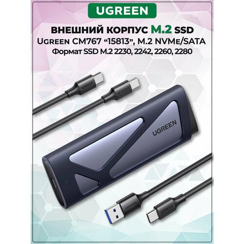 Найти - Бокс для жесткого диска Ugreen CM767 (M.2 NVMe and SATA) серый (15813)