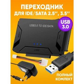 Адаптер переходник 3 в 1 USB 3.0 - SATA / IDE / 2.5 3.5 HDD преобразователь является универсальным устройством, предназначенным для работы с различными типами жестких дисков и оптических приводов.