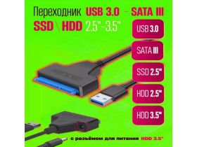 Адаптер-переходник "USB 3.0 - SATA 2.5" для HDD и SSD с дополнительным питанием 103813779080
