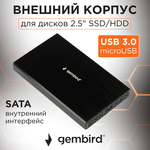 Внешний корпус 2.5" Gembird EE2-U3S-55, чёрный, USB 3.0, SATA, алюминий