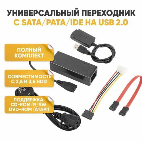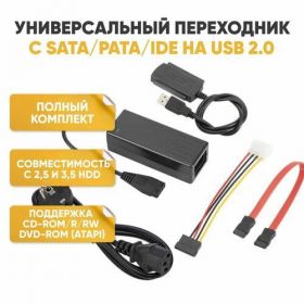 USB-SATA-IDE адаптер-переходник, предназначенный для подключения внешних жестких дисков 2.5/3.5 с интерфейсом IDE или внешних жестких дисков с интерфейсом SATA к компьютеру или ноутбуку через интерфейс USB 2.0. Переходник адаптер IDE 40 IDE 44 SATA имеет два канала для быстрой передачи данных от контроллера к устройству, от устройства к контроллеру. Хаб с кабелем позволяет подключить к порту USB компьютер, ноутбук, любой жесткий диск (HDD и SSD) и другие аксессуары оснащенные разъемом USB. Адаптер прост в использовании, настраивается по принципу plug & play и не требует установки дополнительных драйверов. Интерфейс USB 2.0 обеспечивает скорость передачи данных до 480 МБит. сек.