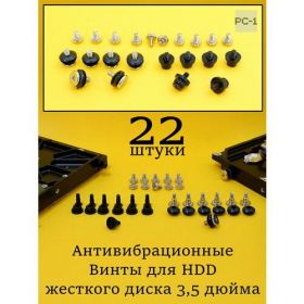 Hard Drive Suspension Screws В комплекте 22 шт. Противоударные винты для компьютера: 1. Z582724 6 штук — Противоударные винты для HDD 3,5 ПК (Фиксирующий винт ПК). Винт с удлиненным и утолщенным основанием и шайбами для них, которые позволяют закрепить жесткий диск форм-фактора 3.5 дюйма в корпусе компьютера с минимальной вибрацией от диска на корпус. Благодаря массивному основанию винта и демпферной шайбе вибрации от привода диска сглаживается и снижается общий уровень шума от компьютера 2. ZA100206 6 штук InWin Амортизируют жесткий диска, резиновые кольце уменьшают вибрацию жесткого диска 3,5". С помощью таких винтов так же можно закреплять HDD в фирменные корпуса InWin и им подобные в которых резиновые шайбы устанавливаются в боковые отверстия в корпусной корзине и через них пропускается крепежный винт 3. Z570732 10 штук Антивибрационные винты для жесткого диска. Винты UNC 6-32 с шестигранной головкой для крепления HDD, видеокарты, PCI и корпус ПК. Компьютерные винты с дюймовой резьбой стандарта UNC 6#32 длиной 5-6мм, шестигранной головкой с пересс-шайбой диаметром 7.7-8.1 мм и шлицей под крестовую отвертку PH. Материал из которого изготовлены винты — никелированная сталь. Цвет — серебристый металлик. Антивибрационные крепления жесткого диска HDD 3,5 дюйма Противоударные винты для жесткого диска. - Снижают шум и вибрацию. - Подходят для тихой сборки. Антивибрационные винты HDD в корпусе пк G16-05 для HDD 3,5 дюйма Черные F10-08 для HDD 3,5 дюйма Серебряные Computer's Hard Drive Suspension Screws / Computer Case Shockproof Screws Shockproof Screws + Shock Absorption 3.5-inch HDD Shock Absorption Screws / противоударные винты для жесткого диска компьютера ПК сервера + амортизирующие винты 3,5 дюйма для HDD амортизирующие винты Suspension Screws Shock absorption mat / G14-16 для HDD 2,5 дюйма Computer's Hard Drive Suspension Screws / Computer Case Shockproof Screws Shockproof Screws + Shock Absorption 3.5-inch HDD Shock Absorption Screws / противоударные винты для жесткого диска компьютера ПК сервера + амортизирующие винты 3,5 дюйма для HDD амортизирующие винты 4x Suspension Screws + 4x Shock absorption mat / Комплект 22шт. (6+6+10) Антивибрационные винты для жесткого диска 3,5 дюйма в корпус ПК, прорезиненный болт с демпферными шайбами, снижает шум и вибрацию HDD жесткого диска в компьютере. Антивибрационные винты, Computer's Hard Drive Suspension Screws, Антивибрационные винты для жесткого диска, винты для жесткого диска 3,5 дюйма в корпус ПК, прорезиненный болт с демпферными шайбами, Антивибрационные винты для ПК, Hard Drive Suspension Screws, Антивибрационные винты для жесткого диска, винты для жесткого диска 3,5 дюйма в корпус ПК, прорезиненный болт с демпферными шайбами, антивибрационные винты HDD; крепление жесткого диска ПК;