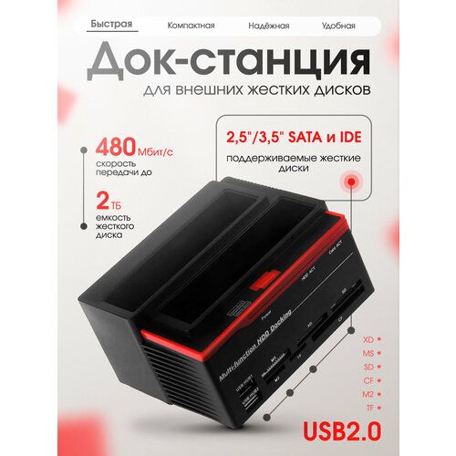 Док-станция для внешних жестких дисков USB2.0 к SATA/IDE — это устройство, которое позволяет подключать к персональному компьютеру или ноутбуку разные типы жестких дисков без необходимости покупать специальные корпуса или устанавливать дополнительное программное обеспечение.