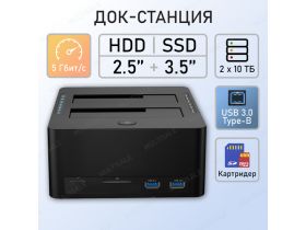 Универсальная док-станция для 2 жестких дисков HDD SSD 2.5" / 3.5" с картридером SD microSD, USB 3.0 5 Гбит/с 103455131907