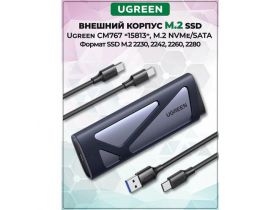 Бокс для жесткого диска Ugreen CM767 (M.2 NVMe and SATA) серый (15813) 103778322843