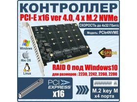 Контроллер PCI-E, 4 порта M.2 NVMe, модель PCIe4NVME, Espada 101694171477