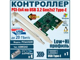 Контроллер PCI-E, USB 3.2 Gen2x2 20Gbps Type-E, модель PCIeU322E, Espada 103789554151