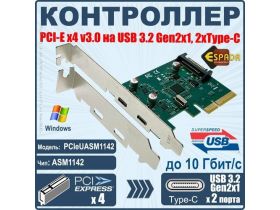 Контроллер PCI-E, USB 3.2 Gen2 Type-C 2 порта, 10Gbp, модель PCIeUASM1142, Espada 101893930963