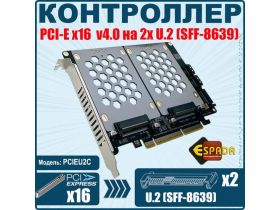 Контроллер PCI-E x16 v4.0, 2x U.2 SFF-8639 для NVMe SSD, PCIEU2C, Espada 103519817003