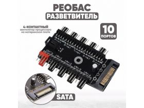 Хаб контроллер реобас разветвитель на 10 кулеров, 4 пин, 3 пин, 2 пин (SATA) 102295229728