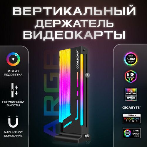 Найти - Вертикальный держатель COOLMOON (кронштейн) видеокарты NVIDIA GeForce RTX, GTX, Quadro, AMD Radeon, ASUS, GIGABYTE и др, планка с подсветкой, черный