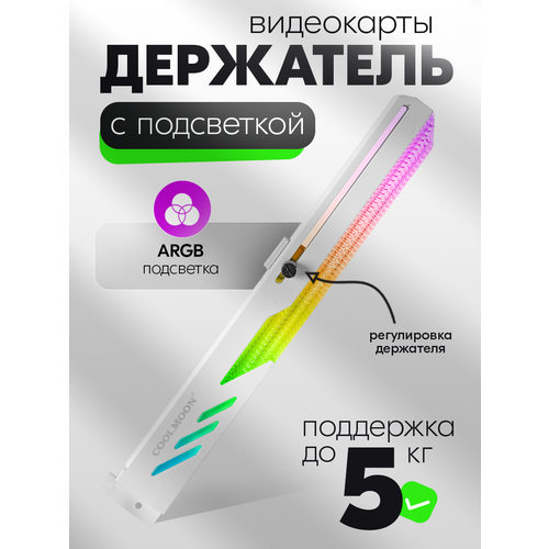 Найти - Горизонтальный держатель кронштейн COOLMOON GT8 для видеокарты NVIDIA GeForce RTX, GTX, ASUS, GIGABYTE, Intel и др, ARGB подсветкой кабель 50см, белый