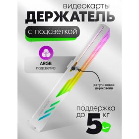 Держатель с подсветкой универсальный подходит к популярным моделям видеокарт NVIDIA, AMD, ASUS и к другим моделям видеокарт разных брендов.