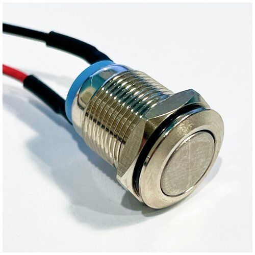 Найти - Кнопка включения ПК, встраиваемая 12мм. (плоская, серебристая), для майнинг фермы и компьютера, кабель 53 см