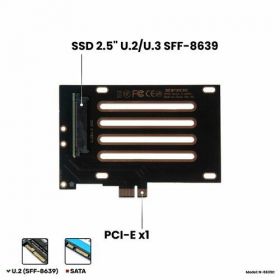 Адаптер (переходник / конвертер / контроллер / плата расширения) NHFKN-8639C позволяет установить серверный накопитель SSD U.2 / U.3 PCI-E x4 NVMe с разъёмом подключения SFF-8639 на ПК в слоты на материнской плате PCI Express x1/x4/x8/x16. Не вставляйте адаптер в слот PCI по ошибке (PCI и PCI-E это разные слоты), так как материнская плата, адаптер и SSD могут быть сожжены. Не требуется установка дополнительных драйверов. В комплект входит металлическая планка для закрепления адаптера в корпусе. Цвет: чёрный. В адаптере предусмотрены прорези с медными вставками для лучшего теплоотвода.