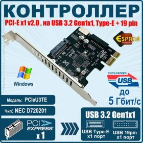 Найти - Контроллер PCI-E, USB3.0 Type-E+ USB 20pin, PCIeU3TE, Espada