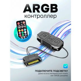 Контроллер оснащен встроенным режимом освещения, который позволяет реализовать управление освещением продуктов 5V3-pin ARGB. Вы сможете настроить яркость и цвет подсветки в соответствии с вашими предпочтениями.Пульт и батарейка в комплекте