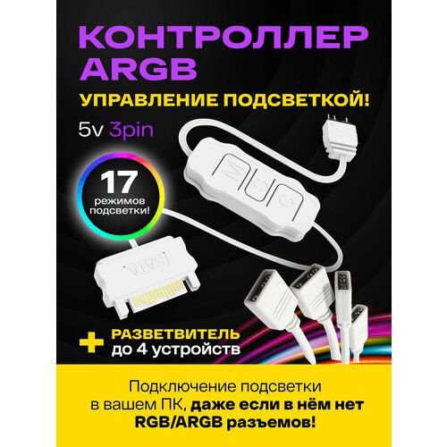 Найти - Контроллер ARGB для ПК. COOLMOON контроллер для вентиляторов с подсветкой 5v 3pin ARGB, питание SATA, белый + разветвитель на 4 выхода