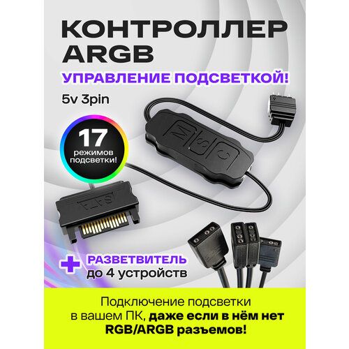 Найти - Контроллер ARGB для ПК. COOLMOON контроллер для вентиляторов с подсветкой 5v 3pin ARGB, питание SATA, черный + разветвитель на 4 выхода