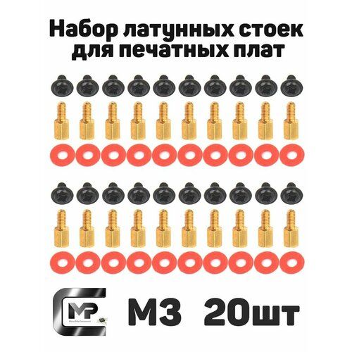 Латунные стойки анодированные, винты, шайбы, комплект для монтажа материнской платы (20 штук).