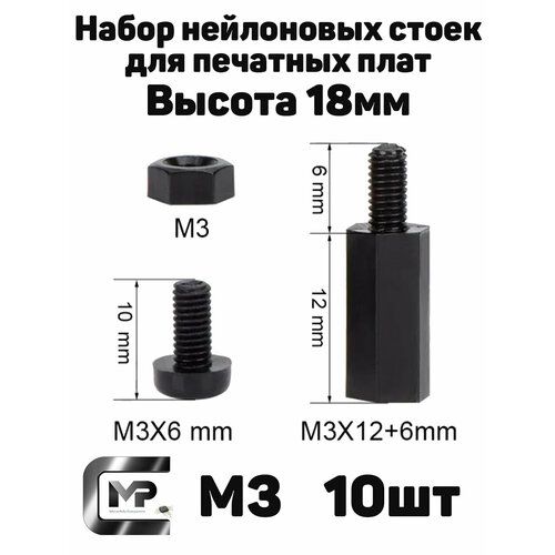 Найти - Набор нейлоновых стоек для печатных плат (10 штук) М3 высота 18мм (папа-мама)