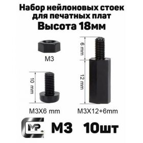 Набор нейлоновых стоек для печатных плат, М3, высота 18мм.