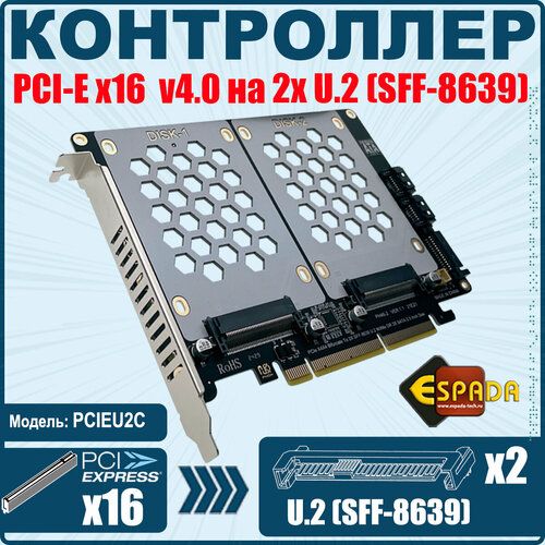 Найти - Контроллер PCI-E x16 v4.0, 2x U.2 SFF-8639 для NVMe SSD, PCIEU2C, Espada