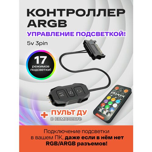 Найти - Контроллер ARGB для ПК с пультом. COOLMOON контроллер для вентиляторов с подсветкой 5v 3pin ARGB, питание SATA, черный