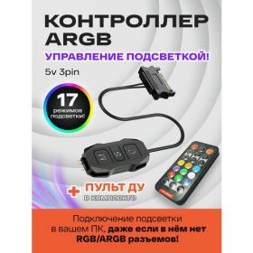 • ARGB контроллер SATA, 5v 3pin - 1шт; пульт ДУ – 1шт; инструкция – 1шт.