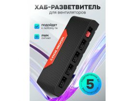 Хаб / Разветвитель, COOLMOON на 5 вентиляторов (кулеров), 4Pin PWM, магнитный низ, черный 4573723210