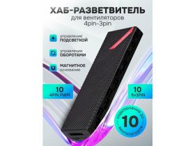 Контроллер COOLMOON на 10 вентиляторов (кулеров) с подсветкой, PWM+ARGB, 4Pin+3Pin, SATA кабель, магнитный низ, черный 103275830290