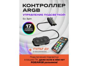 Контроллер A3 ARGB для 3 устройств 5V3PIN с подсветкой: вентиляторы/держатели/ленты и тд, питание SATA + пульт, черный 4477648796