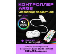 Контроллер A3 ARGB для 3 устройств 5V3PIN с подсветкой: вентиляторы/держатели/ленты и тд, питание SATA + пульт, белый 4477653365