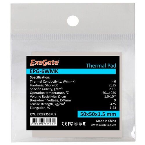 Термопрокладка ExeGate EPG-6WMK (50x50x1.5 mm, 6 Вт/ (мК)) (EX282355RUS)