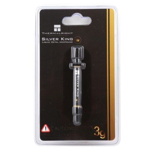 THERMALRIGHT Silver King - Это первая термопаста, состоящая из 100% жидкого металлического сплава. Это жидкость при комнатной температуре (например, ртуть), но она абсолютно нетоксична и обладает высокой увлажняющей способностью для нескольких материалов, кроме алюминия. THERMALRIGHT Silver King особенно рекомендуется для никелированной меди.