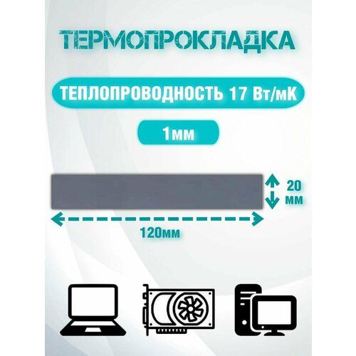 Найти - Термопрокладка серая теплопроводностью 17 Вт/mk 120x20x1 мм/Термопрокладки для ПК