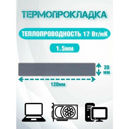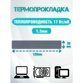 Найти - Термопрокладка серая теплопроводностью 17 Вт/mk 120x20x1.5 мм/Термопрокладки для ПК