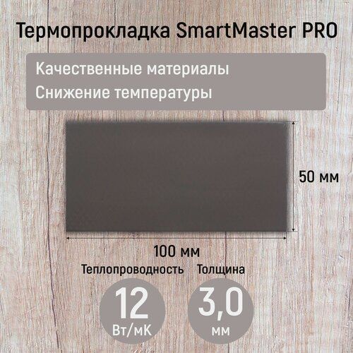 Найти - Термопрокладка 3 мм 12 Вт/мК SmartMaster PRO 100x50мм для видеокарты, ноутбука, консоли, ссд, асика, компьютера.